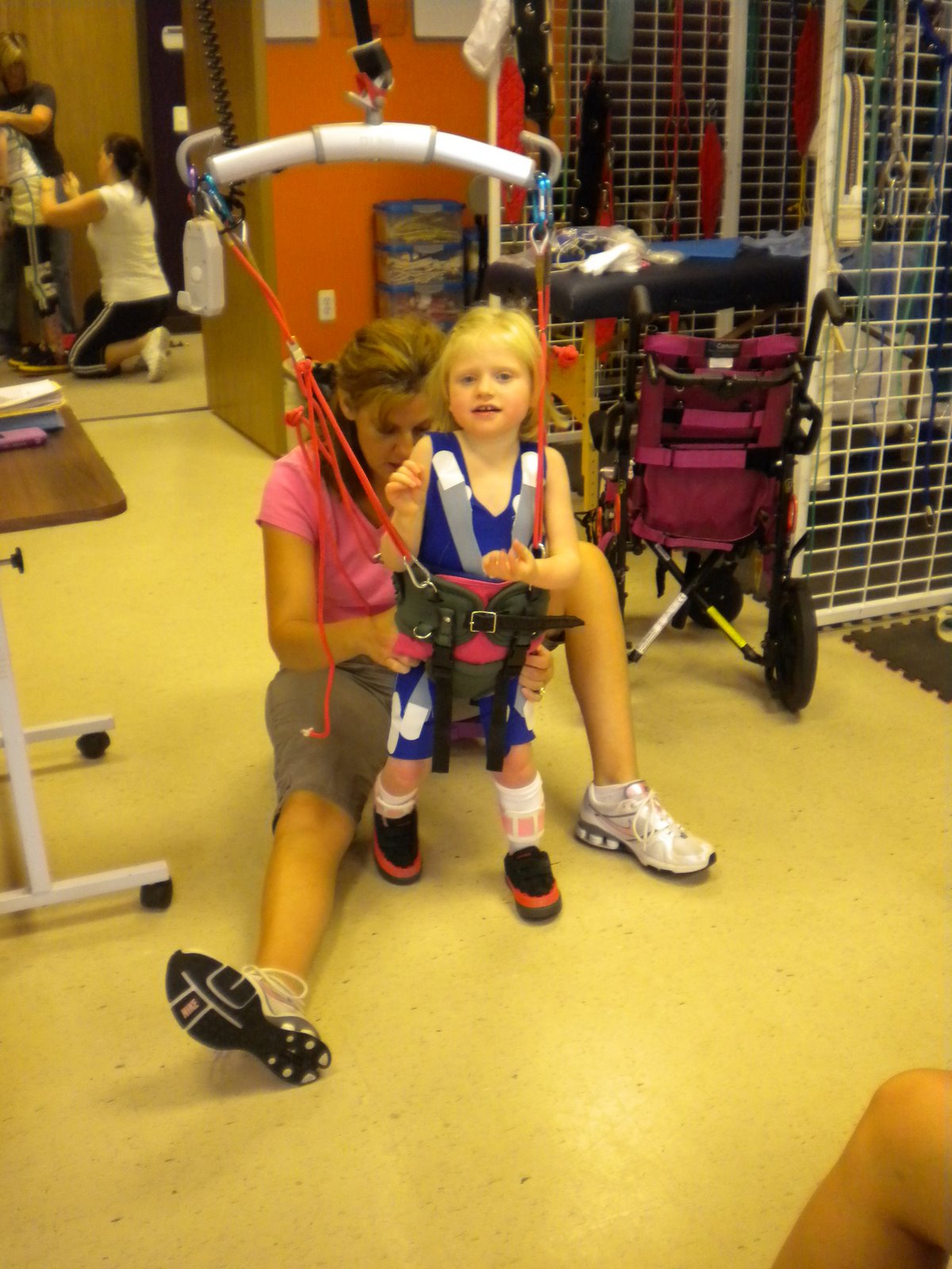 We then started the Lokomat - an intensive therapy that helped Annie start to bend her knees and gain stamina: